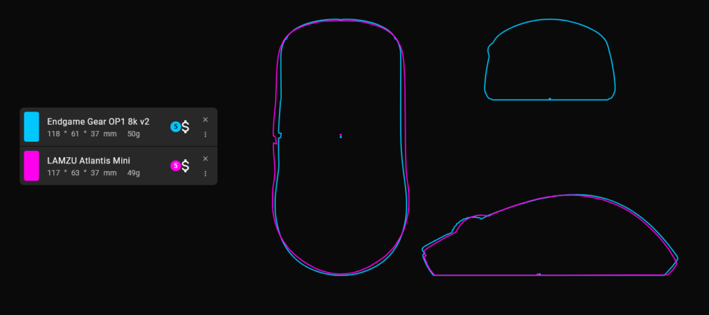 サイズ感や形状が近い他のマウスと比較していく。