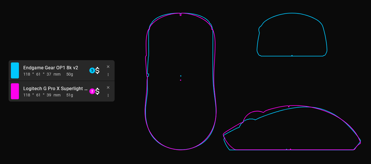 まずはPRO X SUPERLIGHT 2cとの比較。