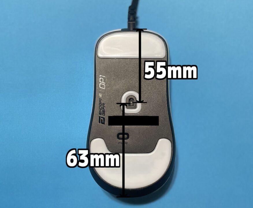 マウス全体から見るとフロント寄り。